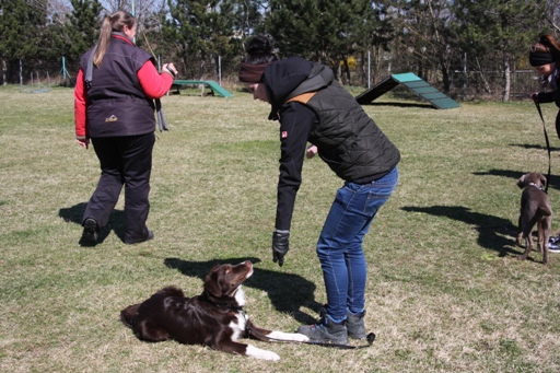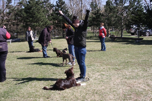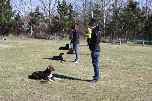 Platz in der Gruppe und vor den Hund treten - geht schon super gut
