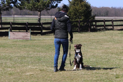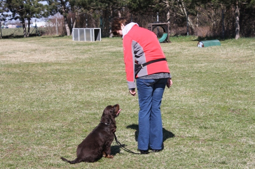 Sitz und eine Runde um den Hund