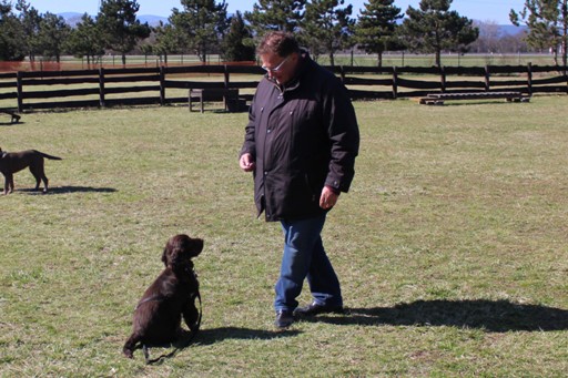 Sitz und vor den Hund treten